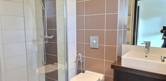 La terrasse principale, exposée plein Sud, prolonge harmonieusement le séjour, tandis qu’une seconde terrasse dessert les chambres, offrant confort et intimité.